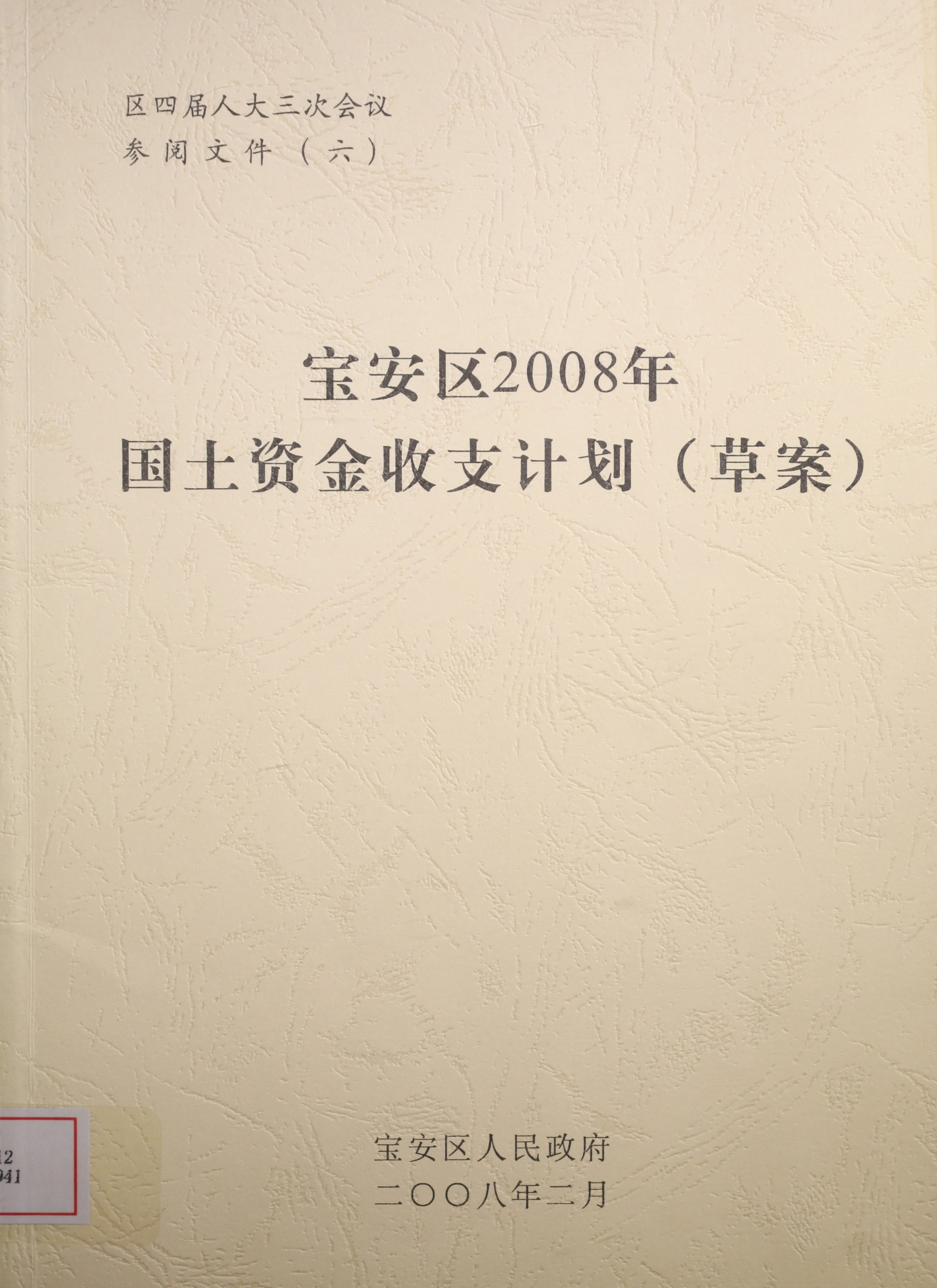 宝安区2008年国土资金收支计划(草案)
